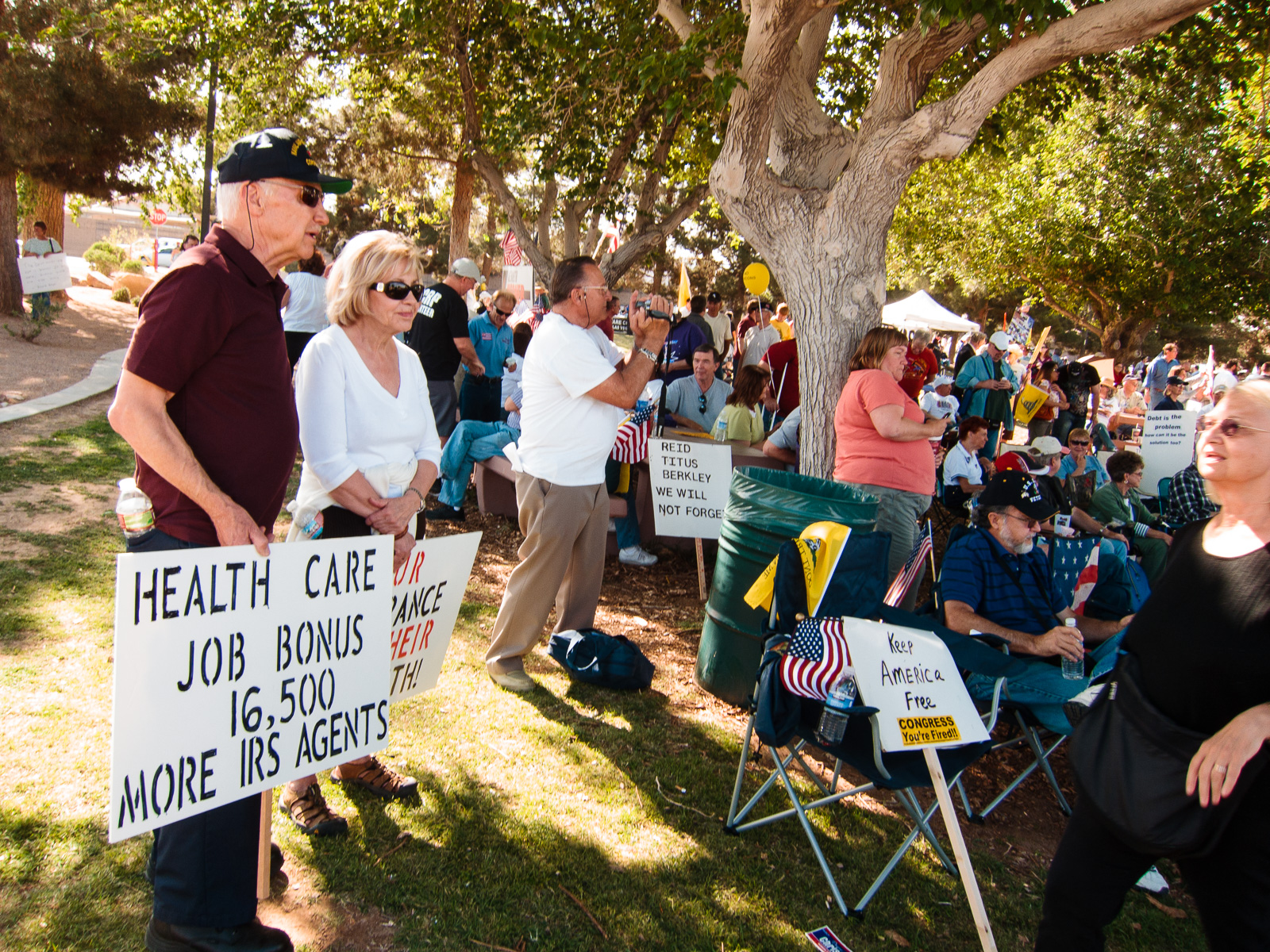 As you would expect, misinformation abounded. I spoke to this fellow for quite a while: very nice guy, sincerely, but he’s got a sign that says “Jail me for no health care? Change it back!” And, speaking to him, he is very riled up about the notion that people will be sent to jail if they refuse to buy health insurance—which, of course, is complete nonsense. He’s getting mad about something that has no truth to it whatsoever.
