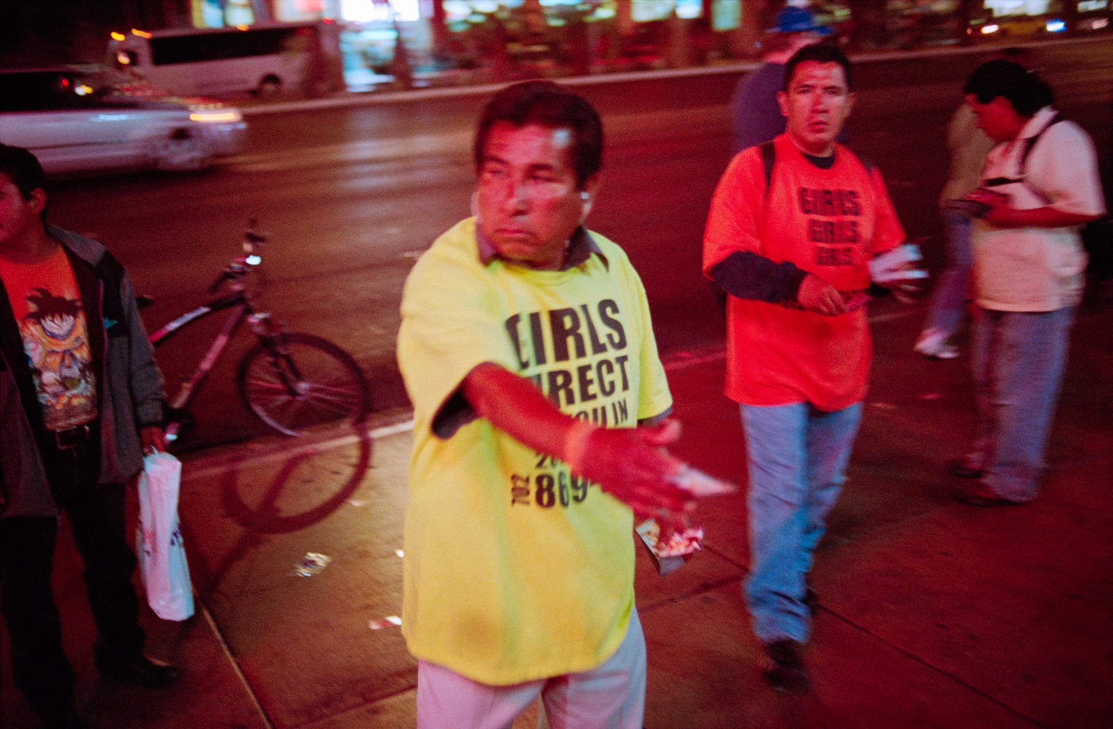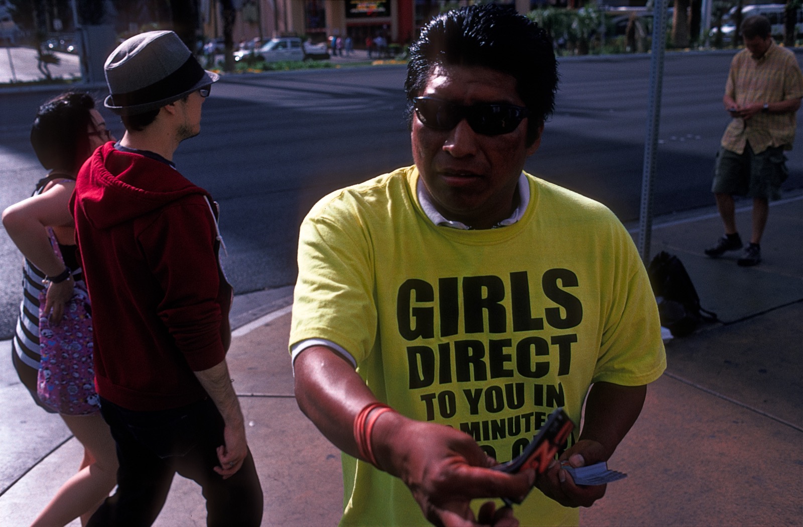 If you’ve ever walked the Las Vegas Strip, you know them. They stand in long lines, handing out stripper cards, the little advertising cards with pictures of girls and a phone number, promising “girls direct to you,” entertainment right in your hotel room.