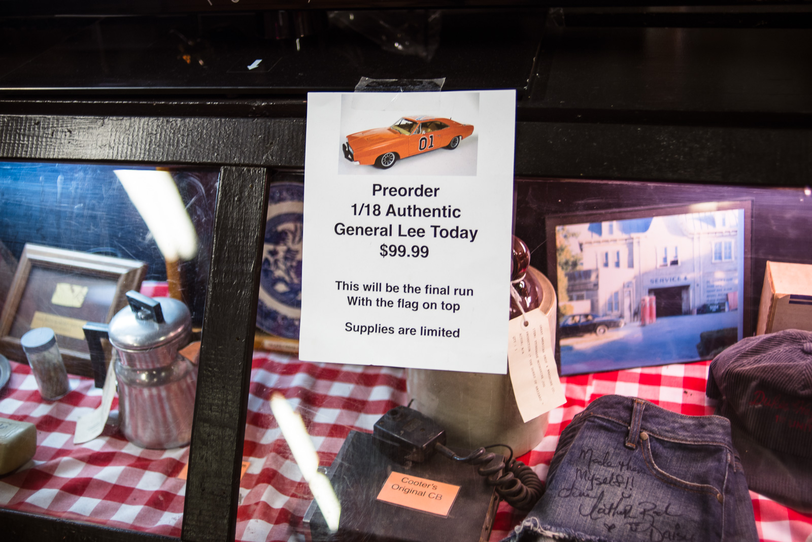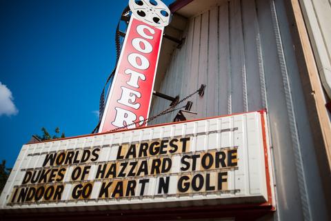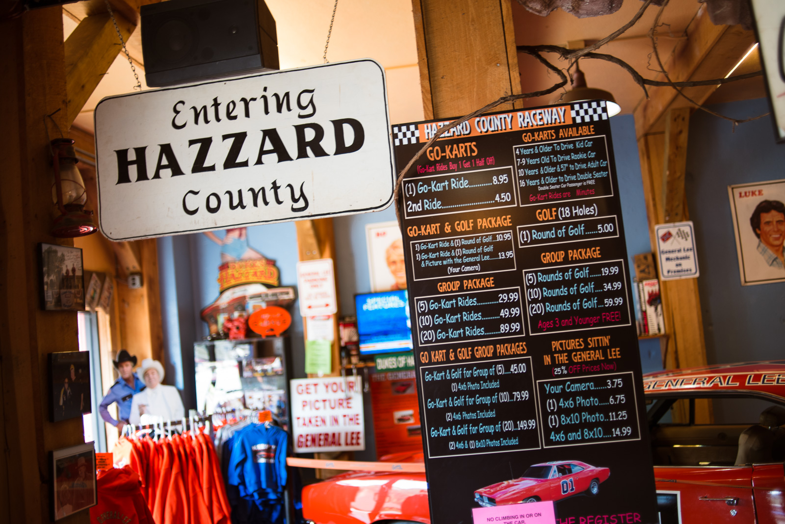 Here, you can buy basically anything you might imagine would be associated with Dukes of Hazzard: T-shirts, toys, pictures, props, a Confederate flag spare tire cover, Hazzard County license plates, and so on. You can get your photo sitting in the General Lee. They even have mini-golf and go-karts, for some reason.