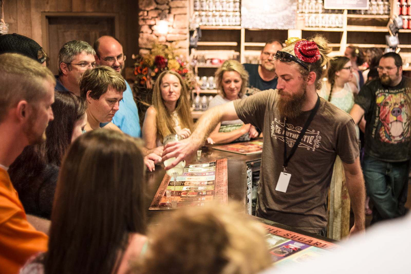 Yeah, it’s not great. The sickly-sweet flavors are mostly designed to hide that, and those went down easier for the women around the bar, but I’m a bourbon drinker, so I liked the raw stuff best—but “best” is relative. It’s free. Sugarlands had the best brew in town—again, relatively.