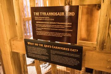 At this point I know you’re wondering about Tyrannosaurus Rex. The explanation here is more mundane: the Tyrannosaurus representatives on the Ark were juveniles, not fully-grown. Here, a sign explains what the Ark’s carnivores ate during the voyage, exploring several methods of preserving meat.
