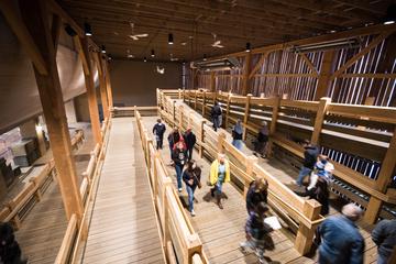 The bus dropped us off a couple hundred yards from the Ark, with a nice pond in between, far enough to get the panoramic view. We walked past booths selling extras—ziplines are a big thing here, but I watched that one episode of South Park, so I know better. I’m not sure what ziplines have to do with Noah’s Ark, anyway. The entrance to the ship was designed to accommodate a long line awaiting entry, but there was no line here, either, despite it being a Saturday.