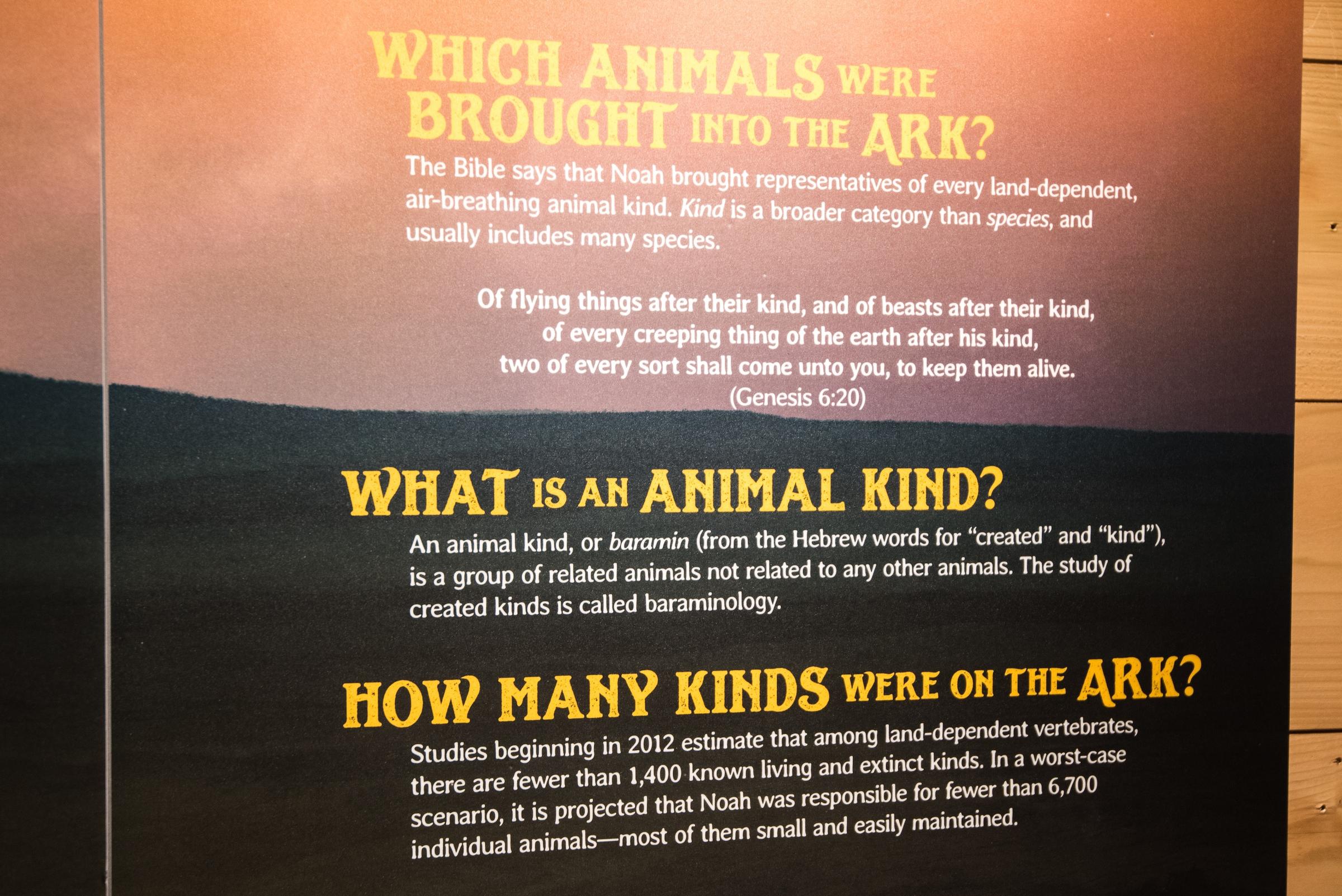 And that’s the point of this exercise. They already tell the Ark story, in extensive detail, at the Creation Museum, a mere forty-five minutes away, but here, they go well into the weeds, addressing the most minute details of how the Ark could have existed and how it could have supported a pair of every animal for more than a year with only eight human crew. It all starts with some funny math.