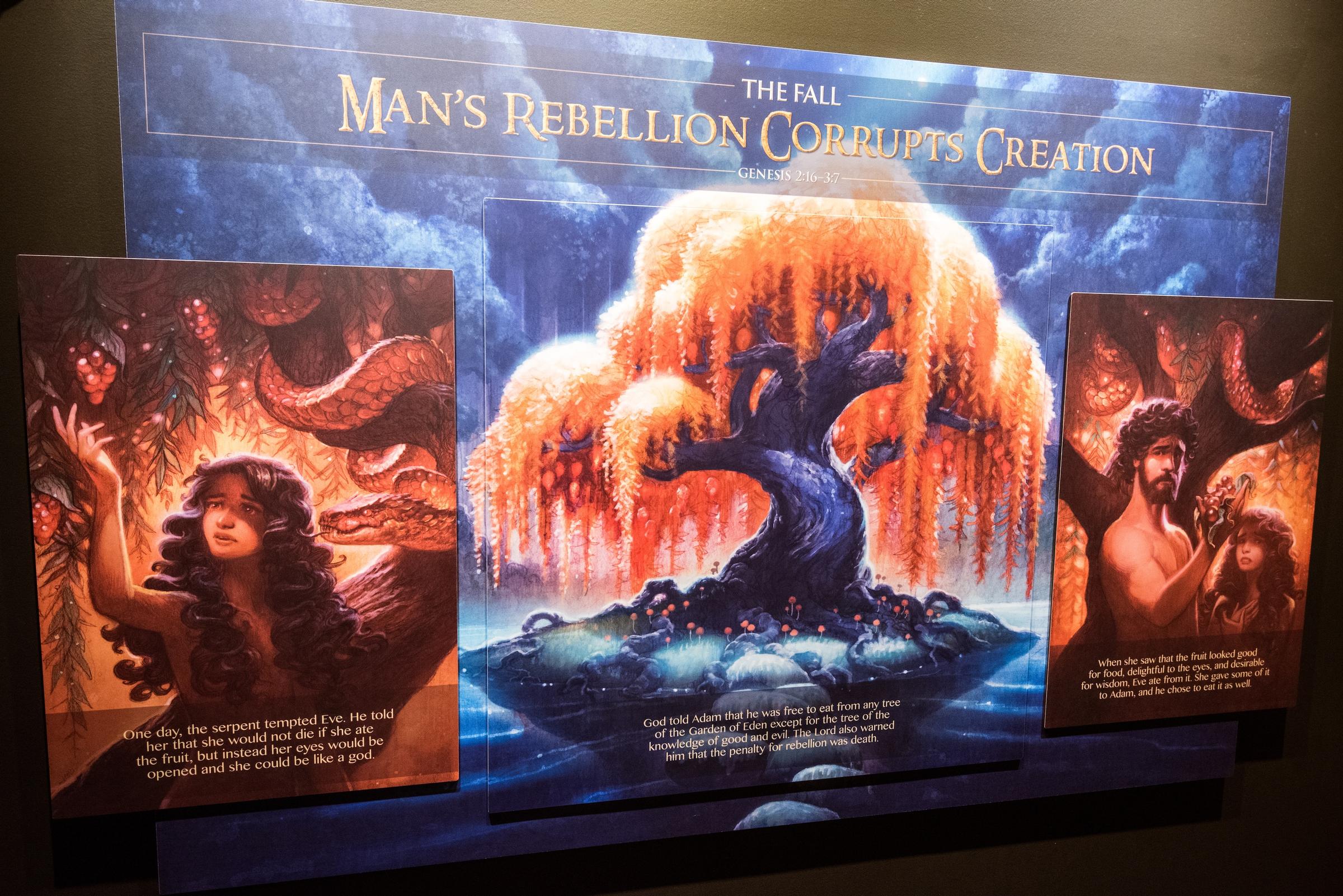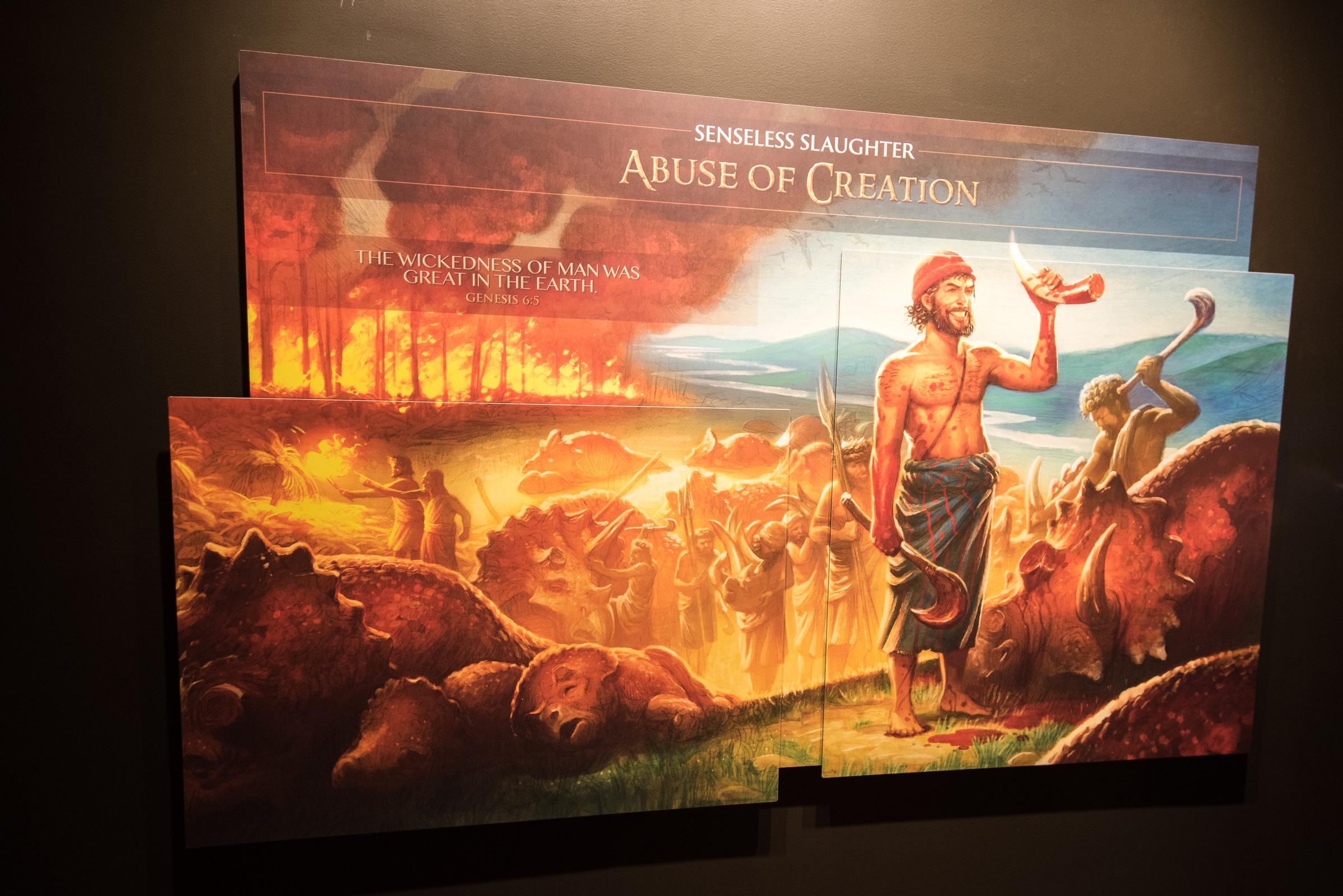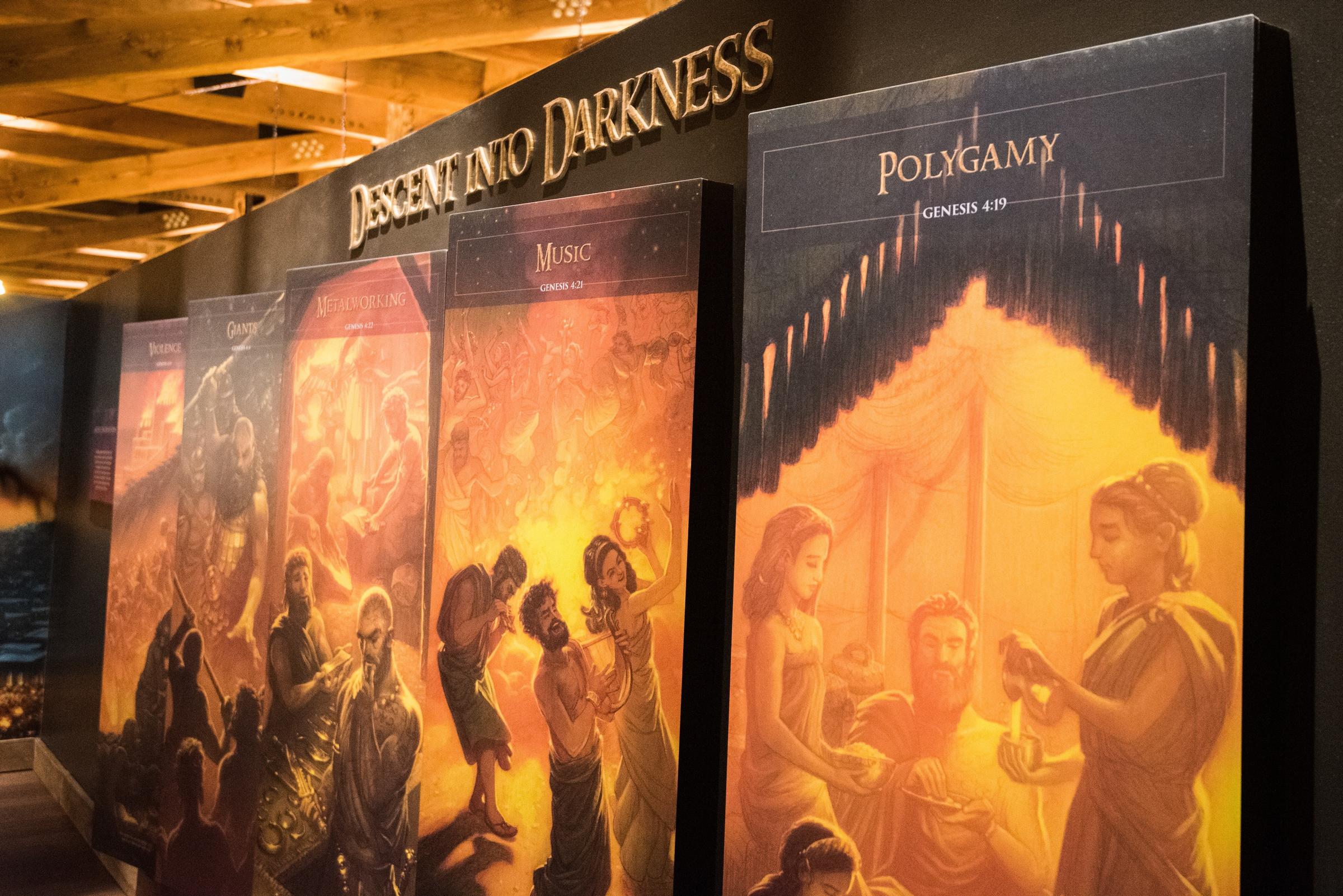 This exhibit is devoted to explaining why God decided to commit the First Genocide. A series of high-quality illustrations depict people’s descent into wickedness, with their polygamy and their music. Living for pleasure! Pleasure is bad, m’kay?