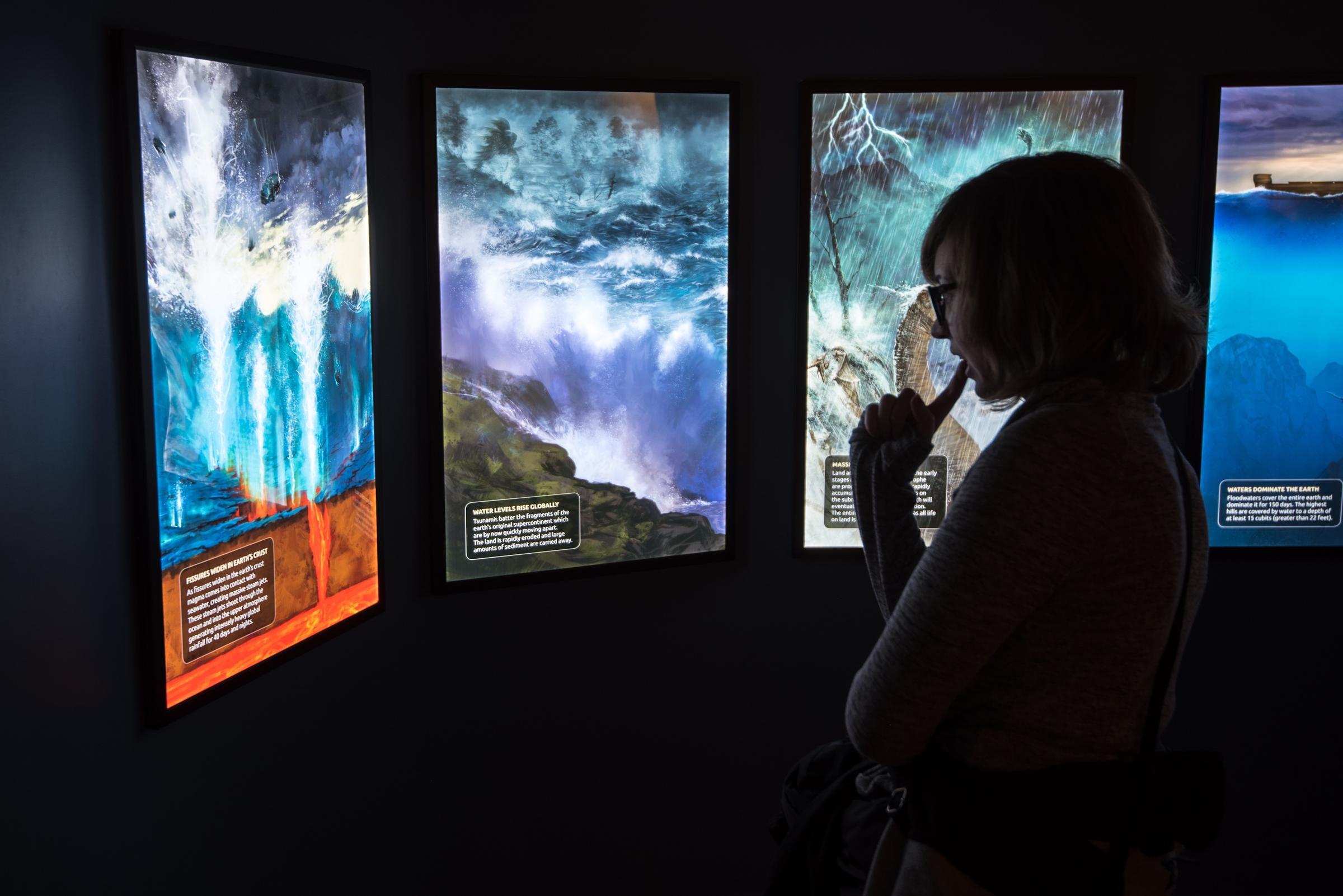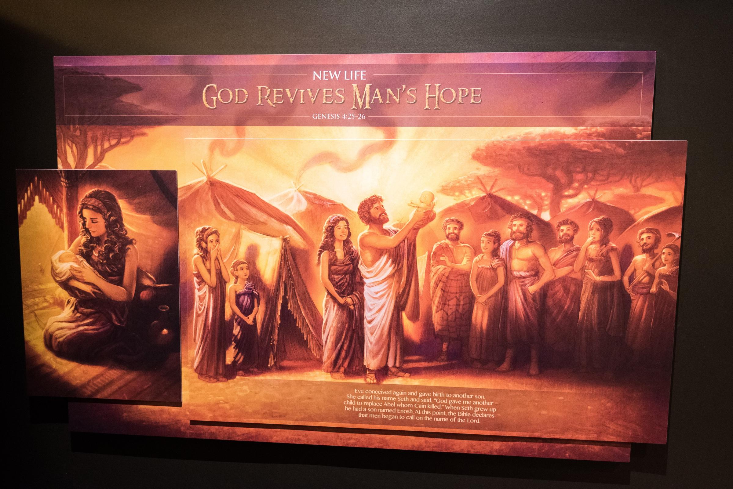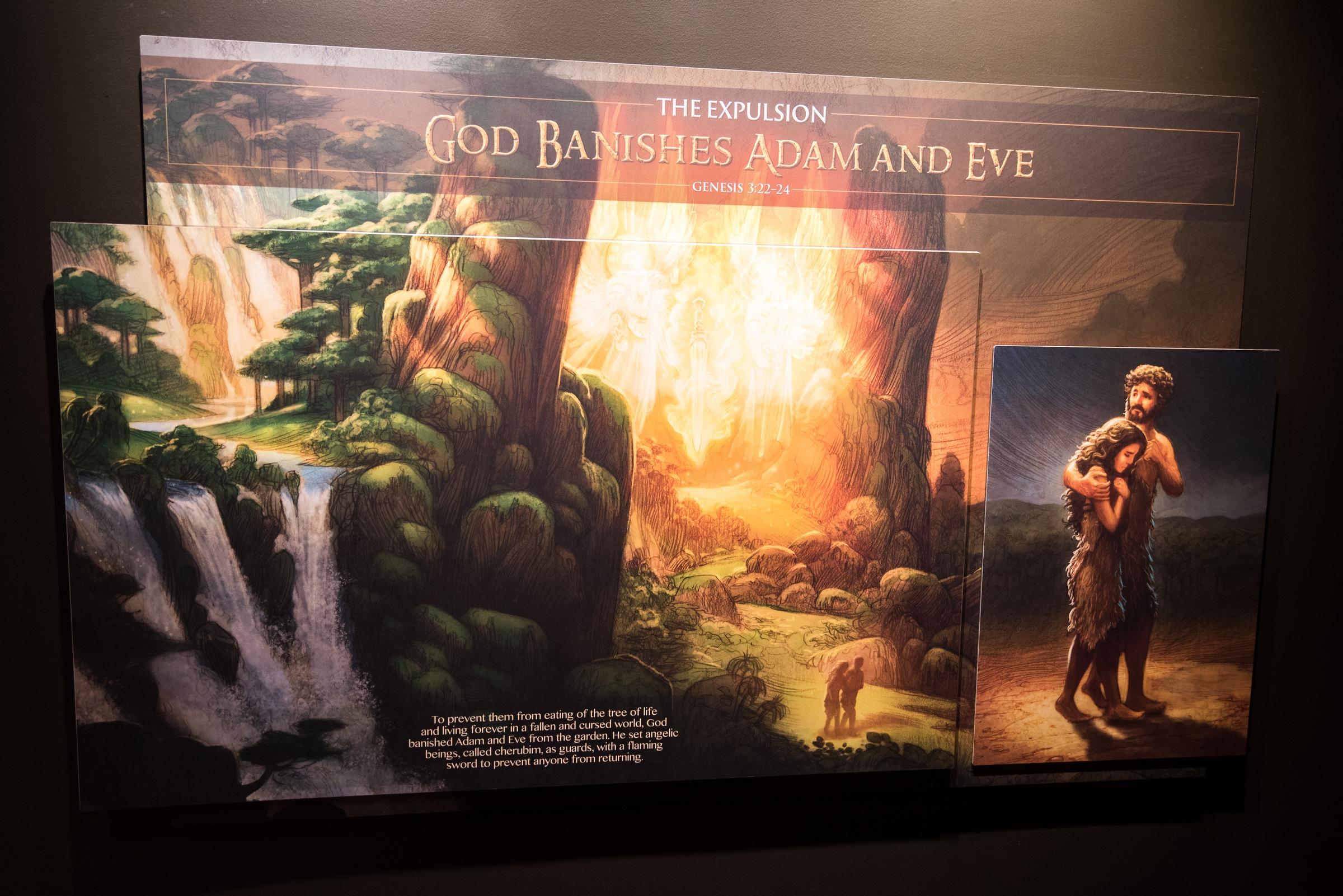 This exhibit is devoted to explaining why God decided to commit the First Genocide. A series of high-quality illustrations depict people’s descent into wickedness, with their polygamy and their music. Living for pleasure! Pleasure is bad, m’kay?