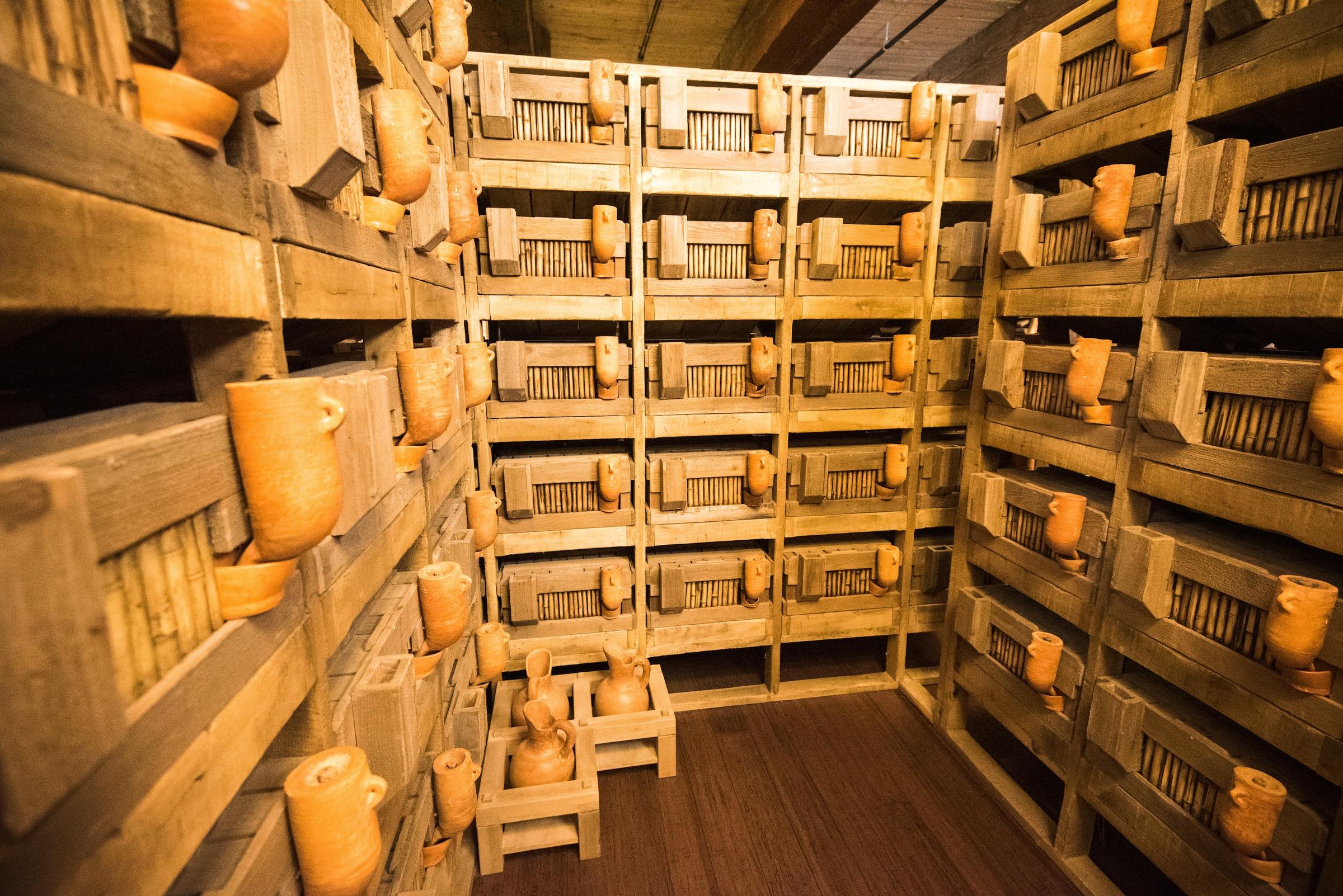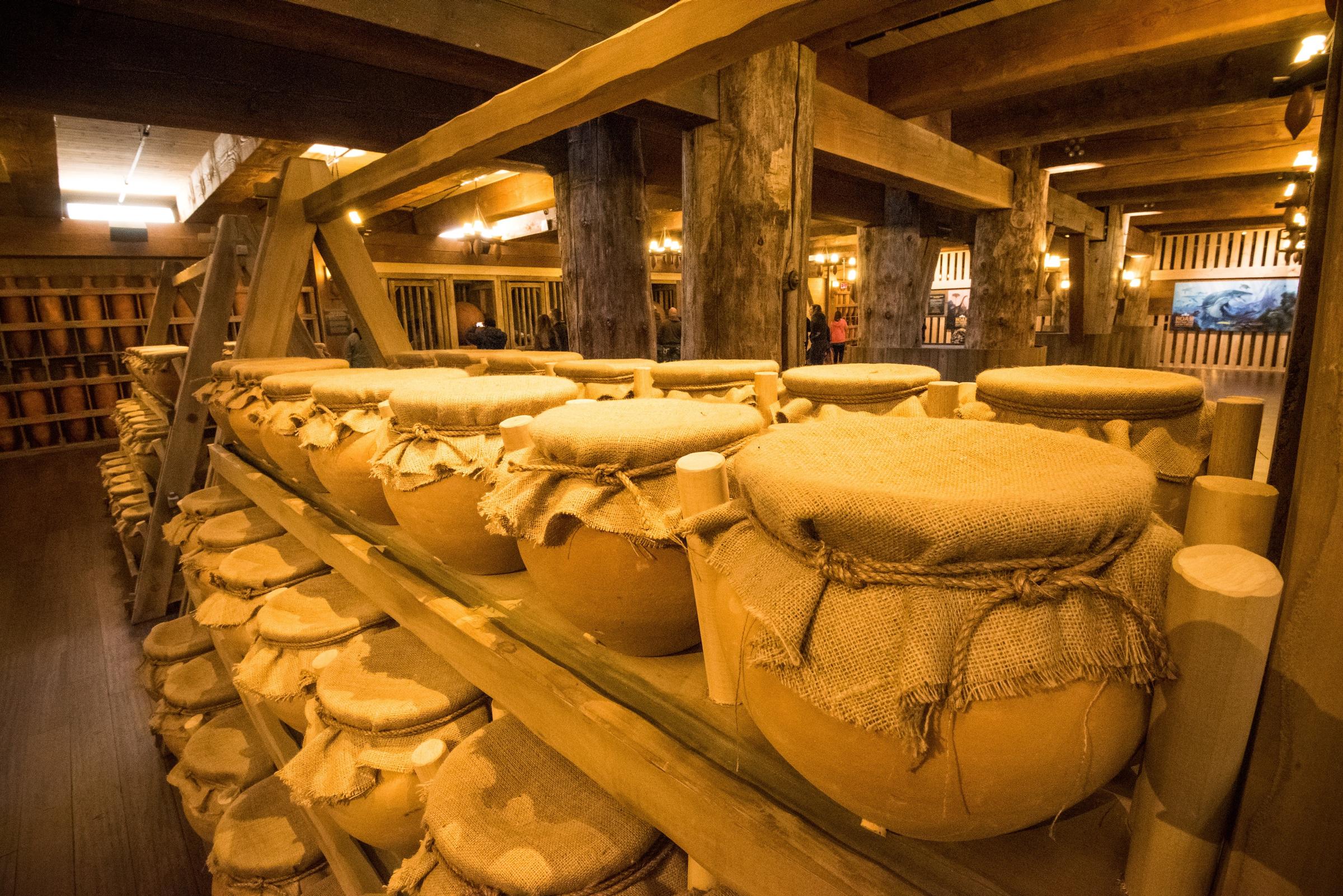 We also walked past shelves of large clay pots, demonstrating how food was stored. They aren’t real clay; they, too, are just for show.
