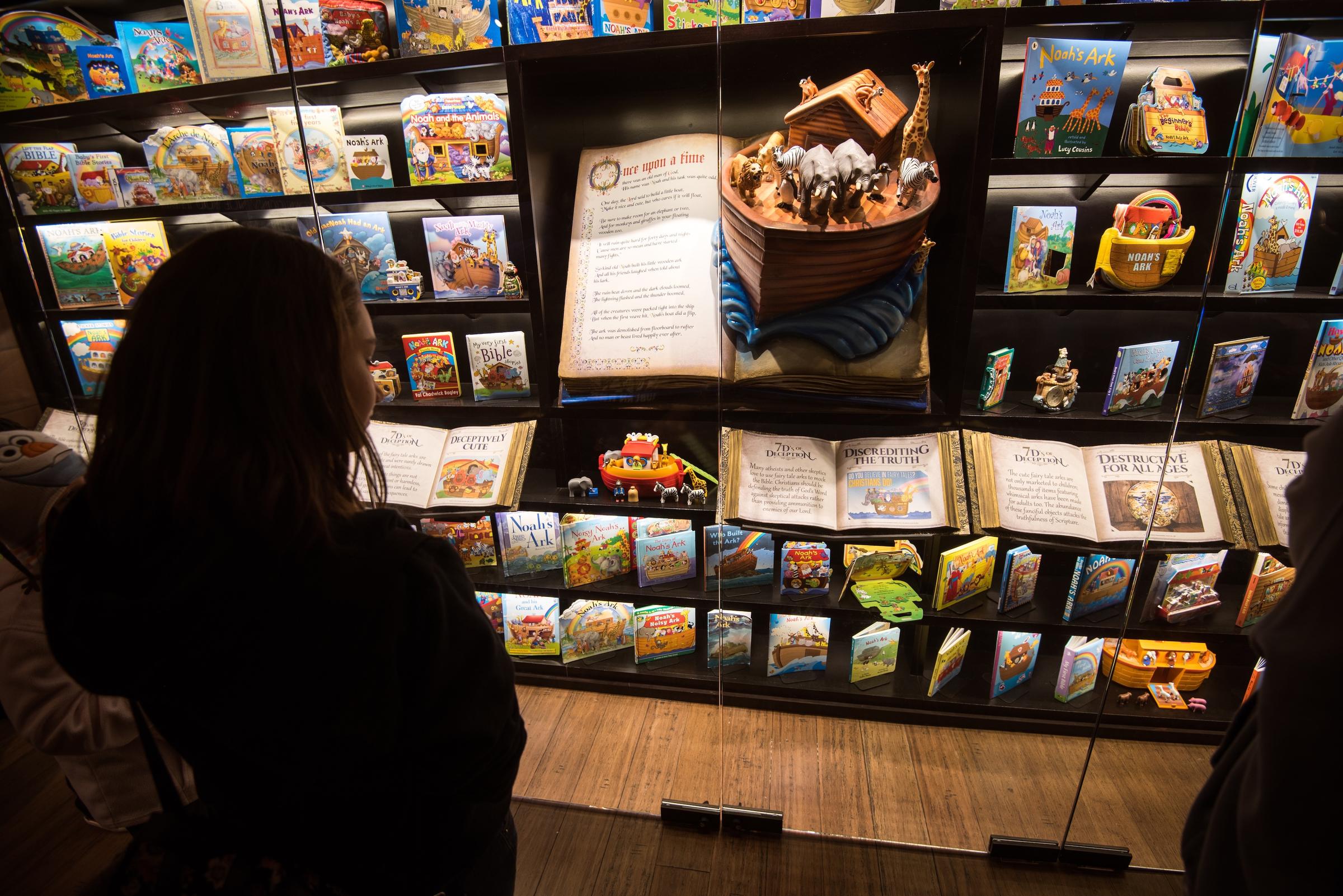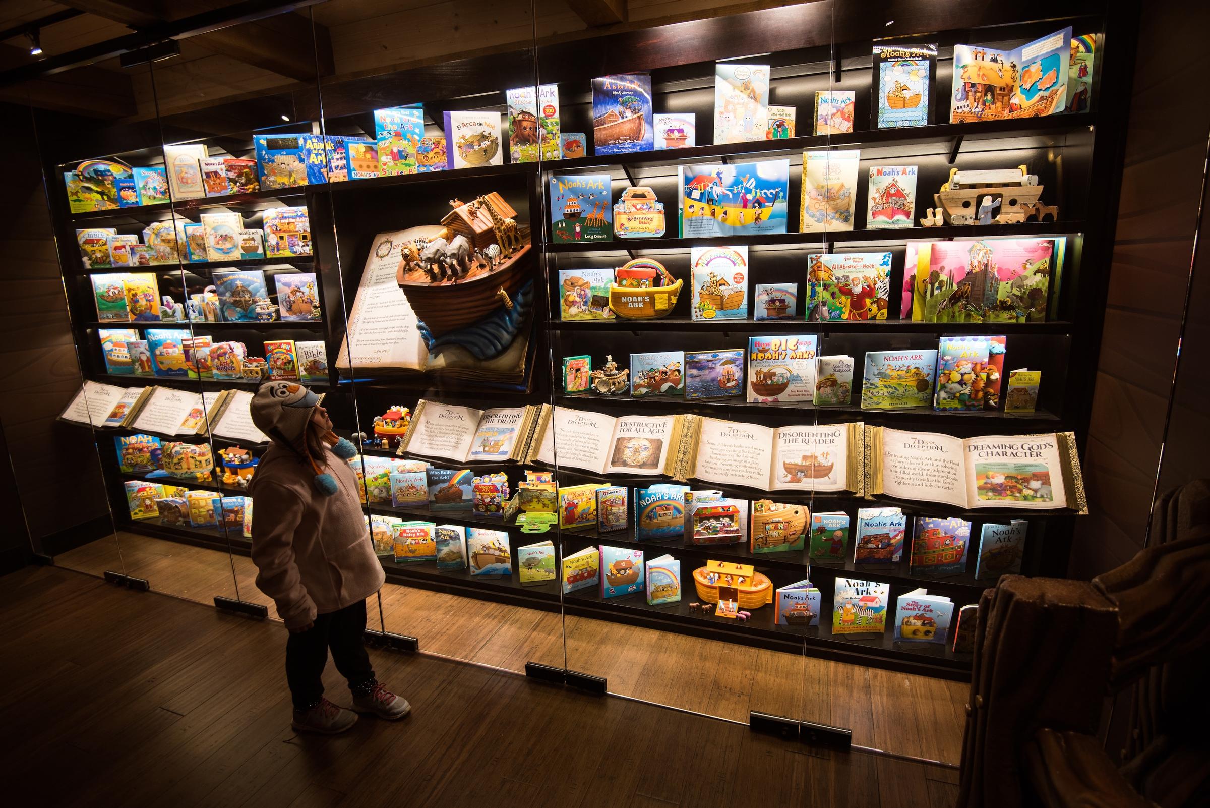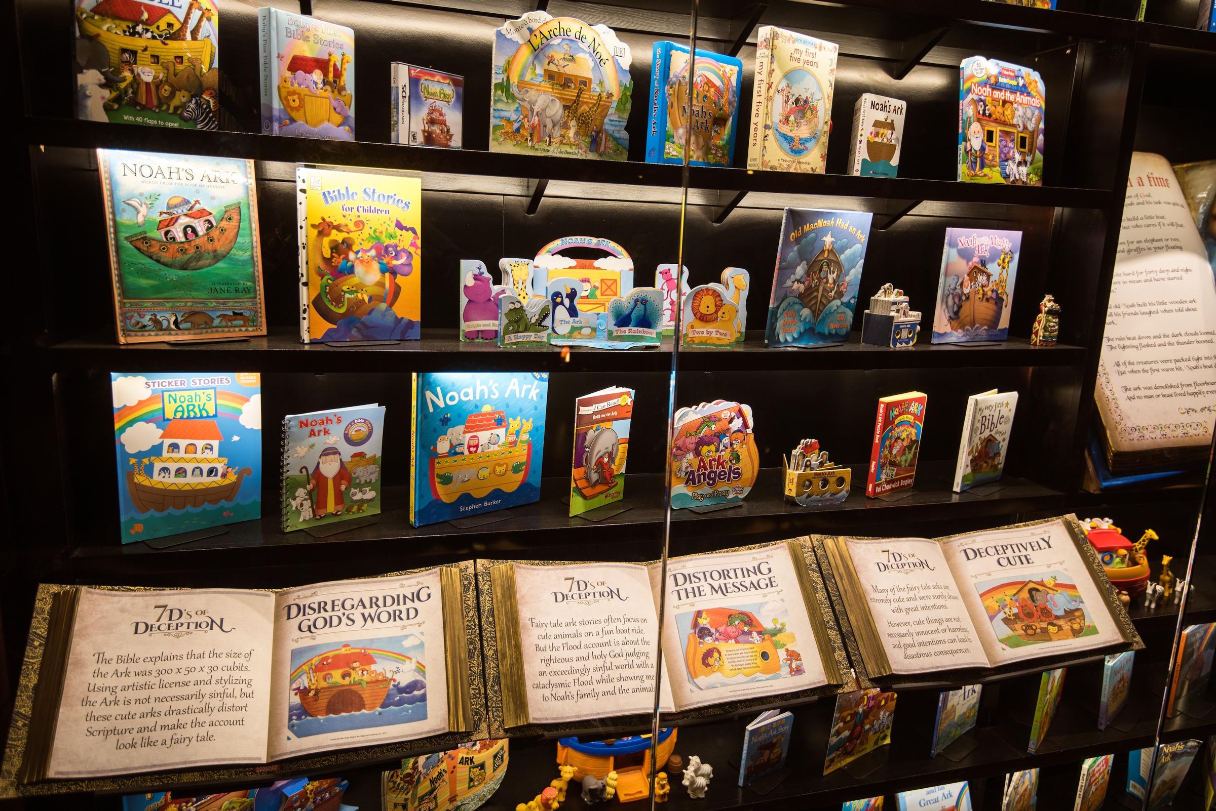 At one point on the second deck, I found an attractive room with a sign, “Fairy Tale Ark”. Inside, many children’s books were displayed on shelves. I thought this would be a display about all the nice ways children can be taught the Ark story—but no. This display was about how bad, how evil, how deceptive all the children’s books are.