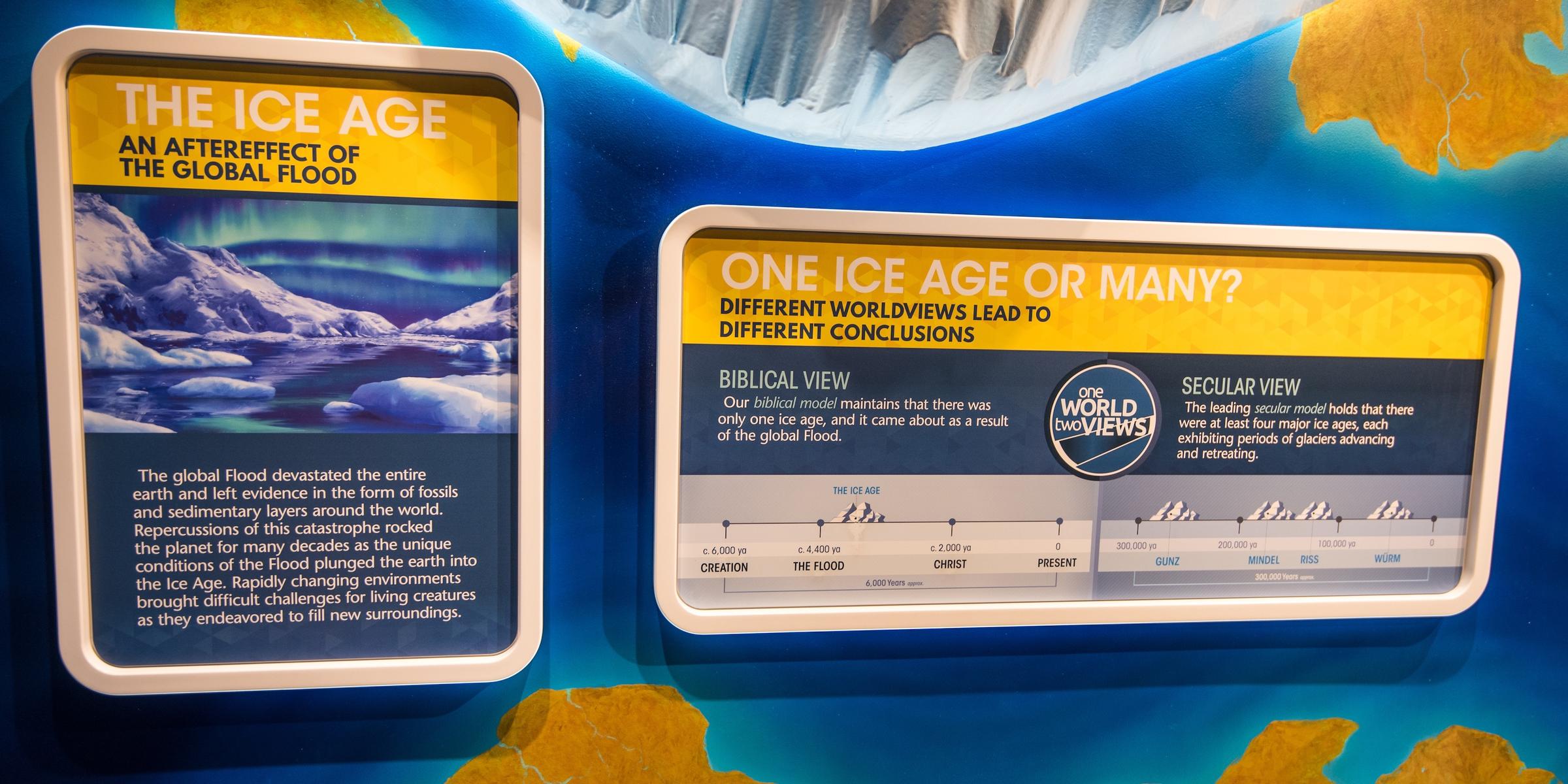There was an ice age—just the one, caused by the sudden environmental changes of the Flood. There is no evidence of an ice age four thousand years ago, but since evidence that ice ages happened at some point is overwhelming, AiG needs to shove one into their timeline, and here it is.